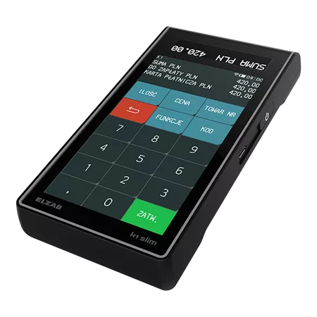 Kieszonkowa kasa fiskalna ONLINE zamknięta w unikalnej obudowie o rozmiarze zbliżonym do smartfona. Mobilna, poręczna i wyjątkowo smukła – bez problemu mieści się w dłoni. Posiada kolorowy, duży i czytelny wyświetlacz 5” o wysokiej rozdzielczości, z dotykową klawiaturą umożliwiającą intuicyjną obsługę. Wydajny akumulator pozwala na pracę w dowolnym miejscu, a gdy konieczne jest podładowanie, można to zrobić za pomocą ładowarki lub powerbanku przez złącze USB.