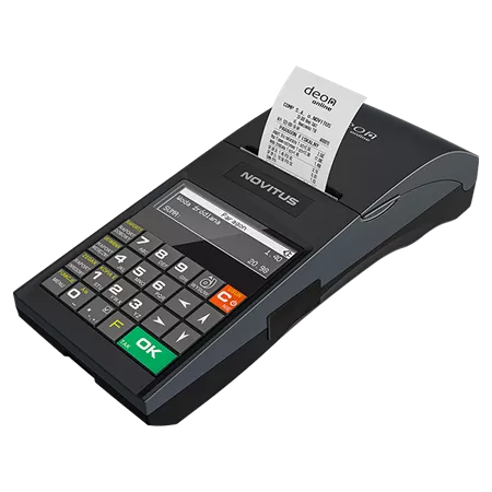 Jest to jedna z najbardziej ergonomicznych drukarek fiskalnych w ofercie NOVITUS, która jednocześnie obsługuje komunikację z Centralnym Repozytorium Kas (CRK), zgodnie z wymogami Rozporządzenia Ministra Przedsiębiorczości i Technologii z dnia 28 maja 2018 r. w sprawie kryteriów i warunków technicznych, którym muszą odpowiadać urządzenia fiskalne rejestrujące. Kopia wydruku dla użytkownika przechowywana jest w pamięci chronionej urządzenia, a dostęp do niej jest realizowany poprzez dedykowaną aplikację. Jak każda drukarka fiskalna marki Novitus, również Deon Online ma możliwość drukowania faktur VAT na swoim mechanizmie drukującym. Drukarki online na formatce faktury oprócz danych Nabywcy mogą również drukować dane Odbiorcy faktury VAT. Mogą też drukować dowolne wydruki niefiskalne, zawierająće tekst, grafikę oraz kody kreskowe i QR. Niewątpliwą zaletą drukari Deon Online jest możliwość rezygnacji z papierowego wydruku i pełna obsługa e-paragonu, a dzięki temu niższe koszty użytkowania urządzenia. Drukarka może pracować w dwóch kategoriach: jako urządzenie ogólnego zastosowania lub jako bileterka – wybór wersji dokonywany jest jednorazowo przez serwisanta podczas jej fiskalizacji. Domyśłnie drukarka komunikuje się poprzez port USB (możliwość zmiany na RS232, LAN, WiFi lub BT) a w pudełku wraz z drukarką dostarczany jest wysokiej klasy kabel USB. DEON online należy do nowej rodziny urządzeń Novitus Online Power. Co to znaczy? Stworzyliśmy linię urządzeń o niespotykanej do tej pory mocy, na którą składają się m.in. 32 bitowe procesory o taktowaniu nawet do 524MHz, ogromna pamięć wewnętrza oraz 256MB pamięci operacyjnej. System LINUX gwarantuje stabilną pracę, a nasza platforma daje zapas mocy na wiele lat do przodu, niezależnie od przyszłych wyzwań. Bezpieczeństwo danych zapewnia moduł TPM oraz dwustronna autentykacja – rozwiązania sprawdzone w ponad 4 miliardach urządzeń na świecie.